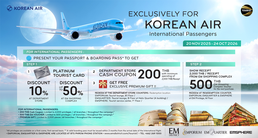 The buzz and excitement starts the moment you step into Emsphere, Bangkok’s stunning new Sleepless Metropolis. Here, you’ll find a fusion of entertainment, dining and contemporary shopping that reflects the beating heart of this great city.