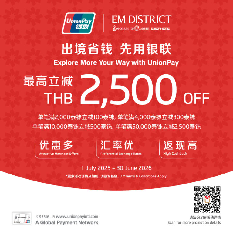 The buzz and excitement starts the moment you step into Emsphere, Bangkok’s stunning new Sleepless Metropolis. Here, you’ll find a fusion of entertainment, dining and contemporary shopping that reflects the beating heart of this great city.