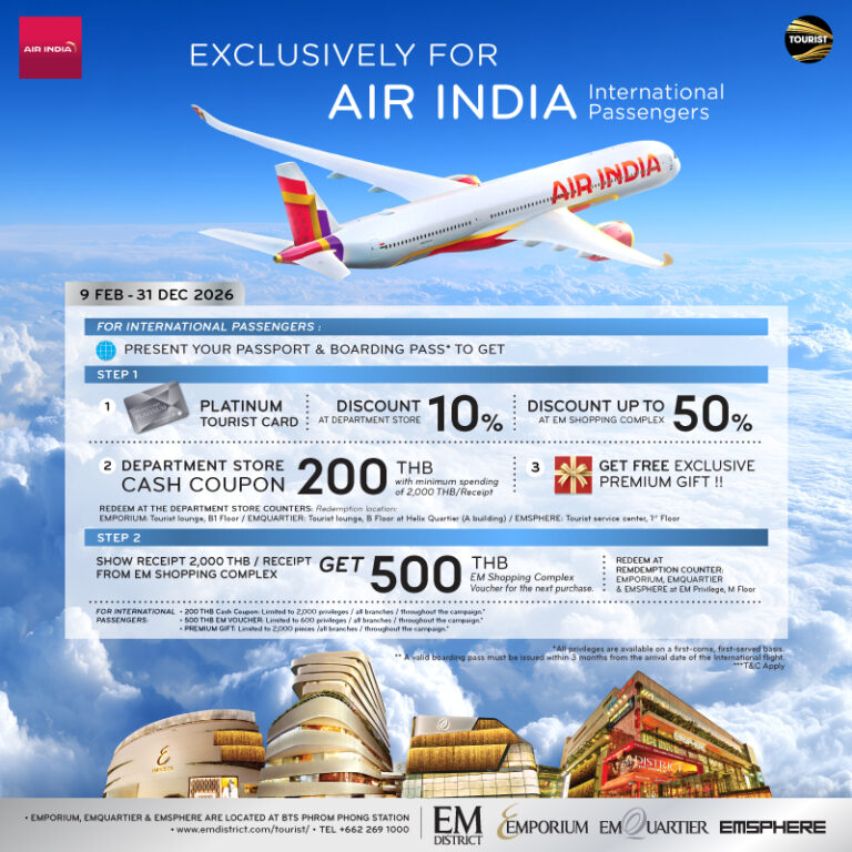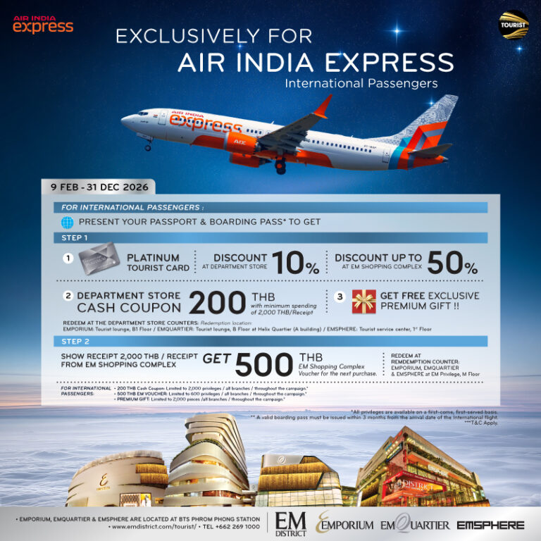 Electronic VAT refunds (e-PP10) can be claimed at the department store. Simply show your passport at the cashier counter where you purchase your products. The amount you spend will accumulate automatically. Once your accumulated spend per day, per store, is 2,000THB or above, you are eligible for a tax refund. Before leaving our store, don’t forget to get a confirmation print out at customer service. This print out is required to get a custom stamp at the airport. Tax refunds will be given by the revenue department at the airport or rebated to your credit card.
