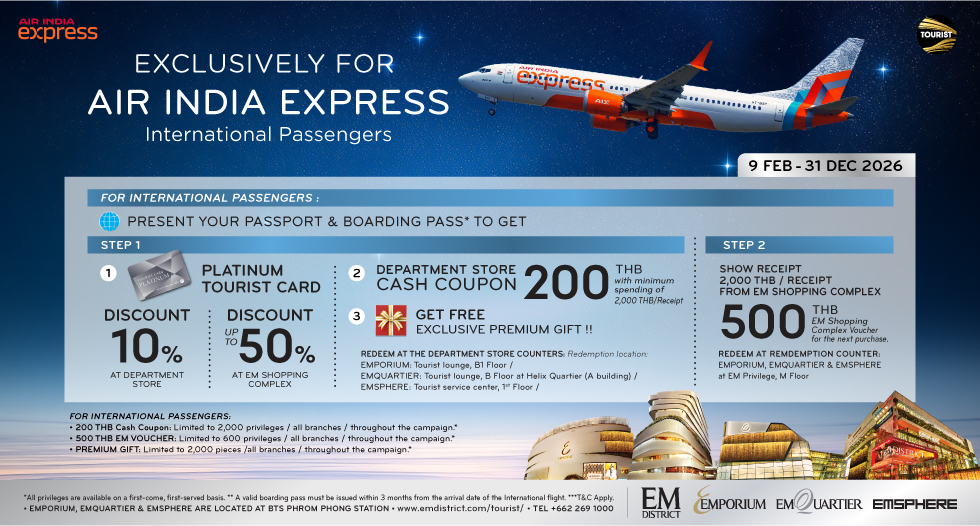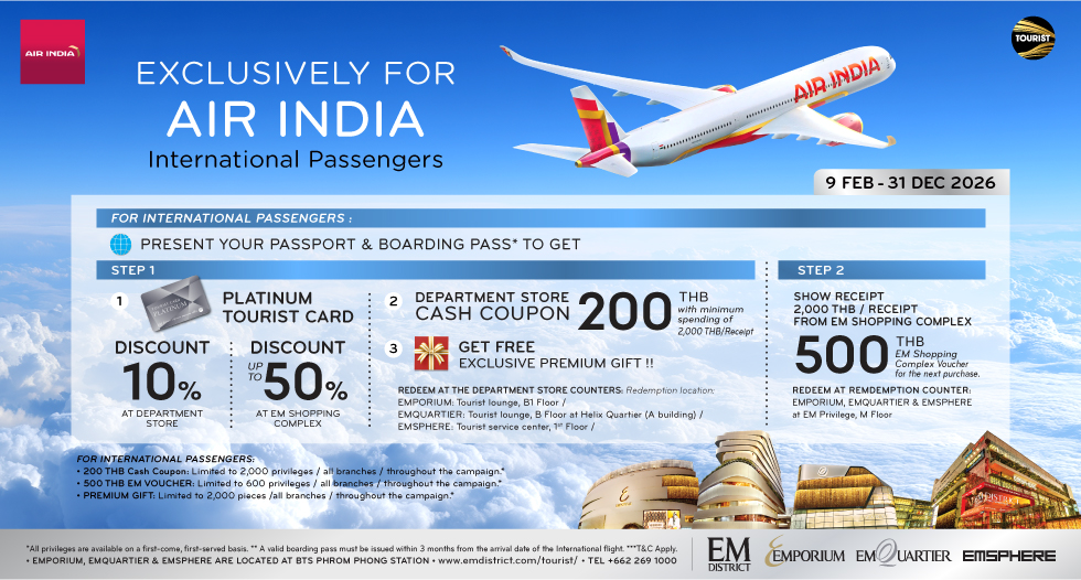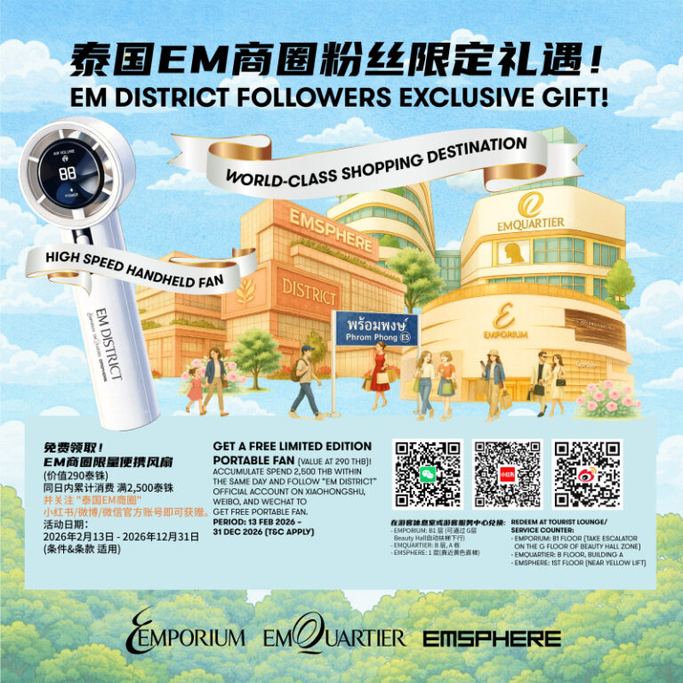 Perhaps EMPORIUM, where you’ll find the world’s top luxury brands showing their latest collections, alongside a superb department store with xx sumptuous levels. Or step into EMQUARIER, where contemporary street fashions mingle with the latest in high-tech and a vast array of delicious eats. Then, stroll over to the stunning new EMSPHERE, Bangkok’s first ‘Sleepless Metropolis’ to visit Ikea’s biggest city store, take in a concert at the UOB Live arena, or hang out at any one of the 50 amazing bars and clubs in the EM Wonder zone.